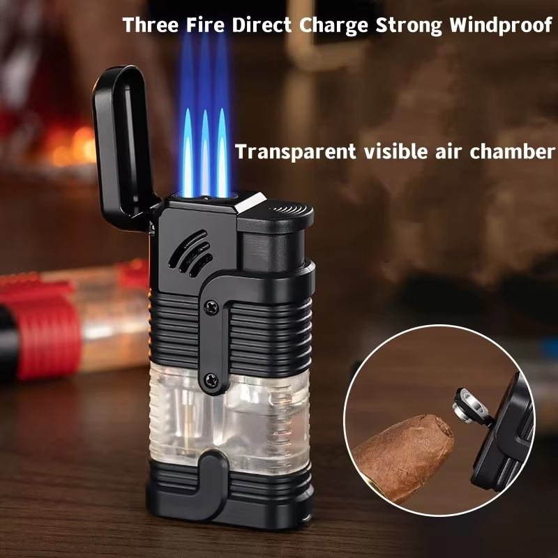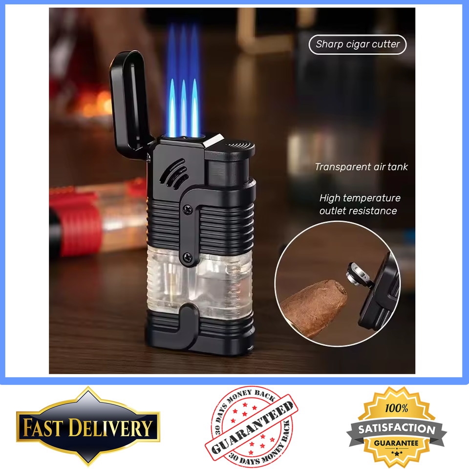 Windproof Three Flame Torch Inflatable Butane Gas Lighter Igniter Cigar Cutter