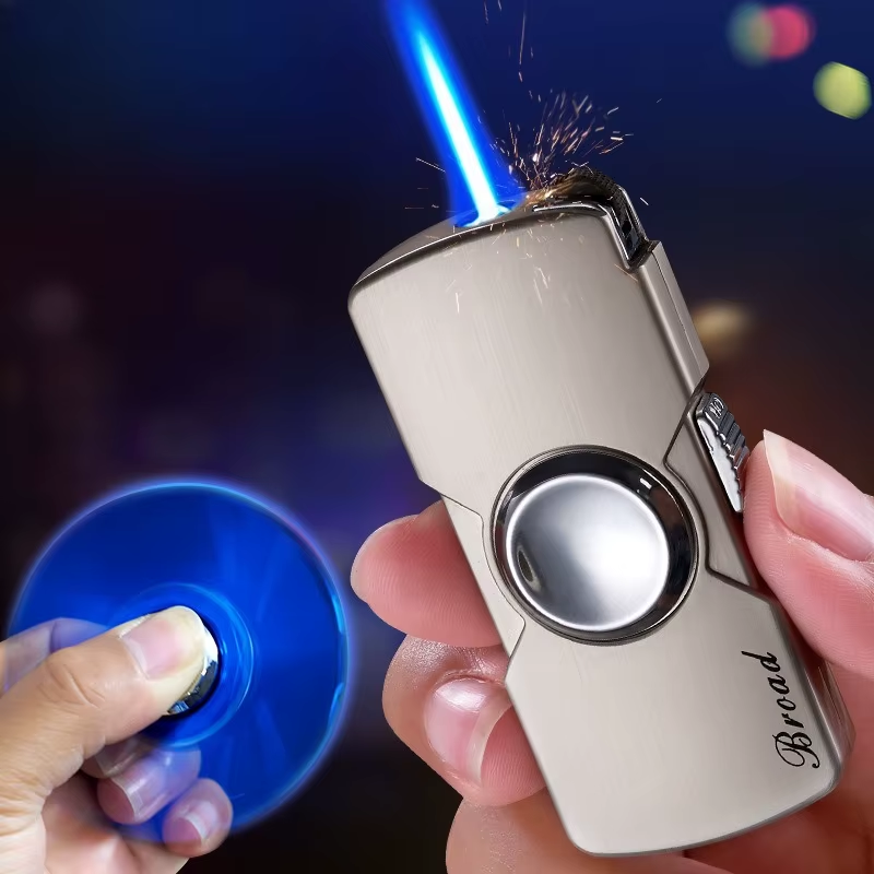 Rotating Gyro Spinner Mini Metal Windproof Blue Flame Torch Inflatable Lighter