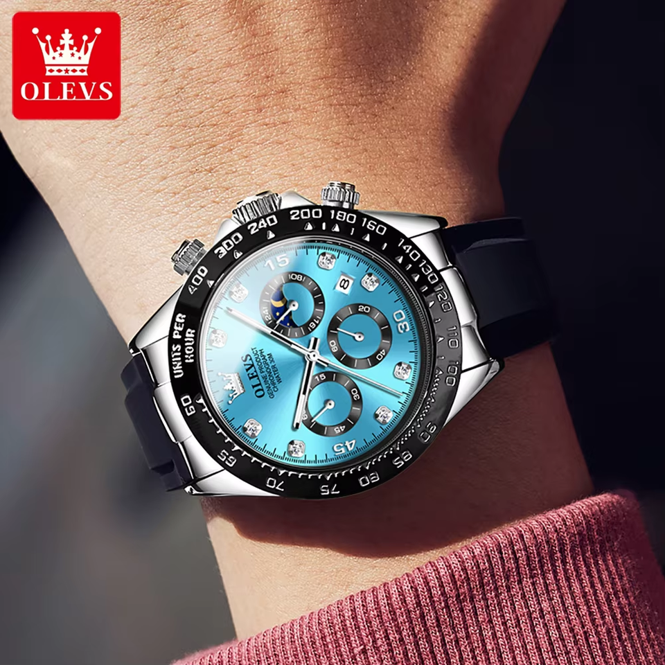 OLEVS 2875 Original Luxury Quartz Watch for Silicone Strap Chronograph Auto Da