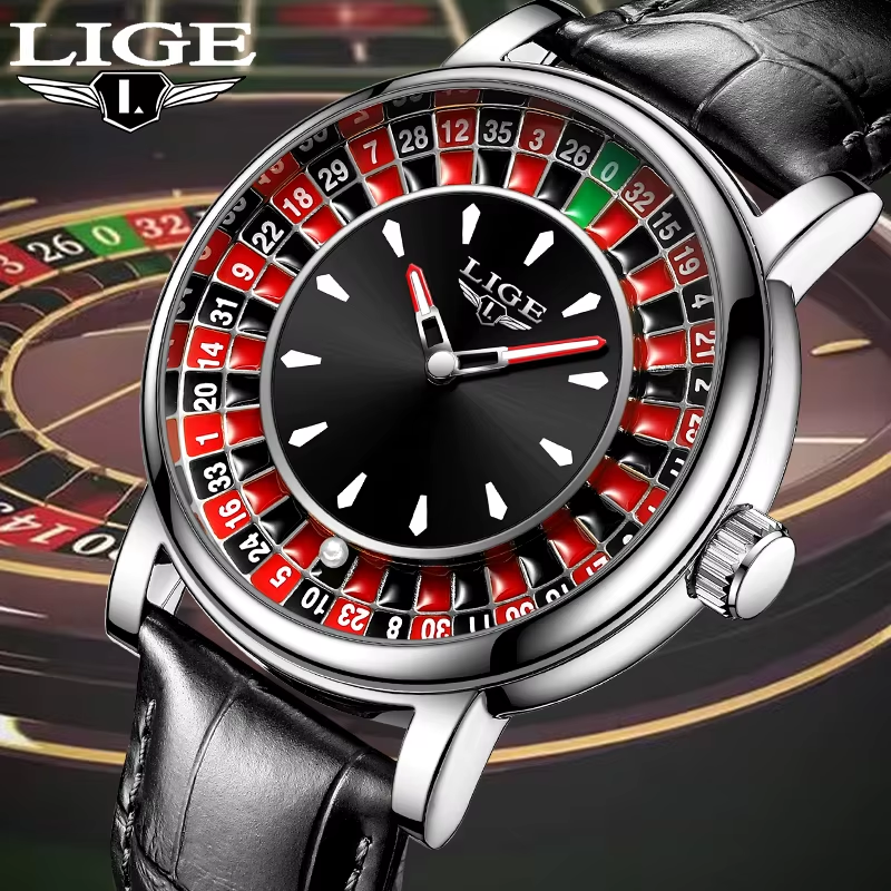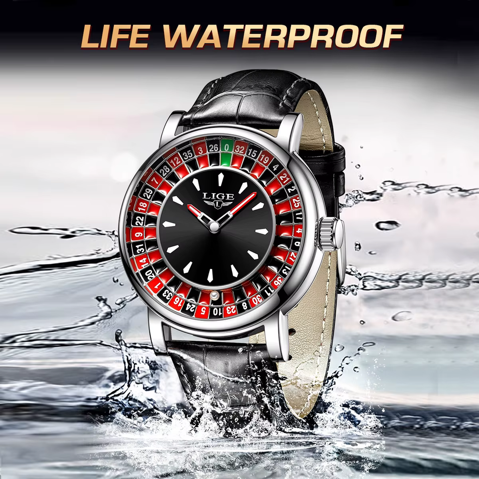 LIGE Creative Unique Dial Watch Fashion Leather Roulette Game Casual Sport Simpl