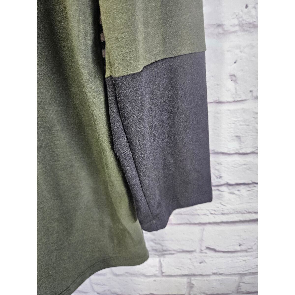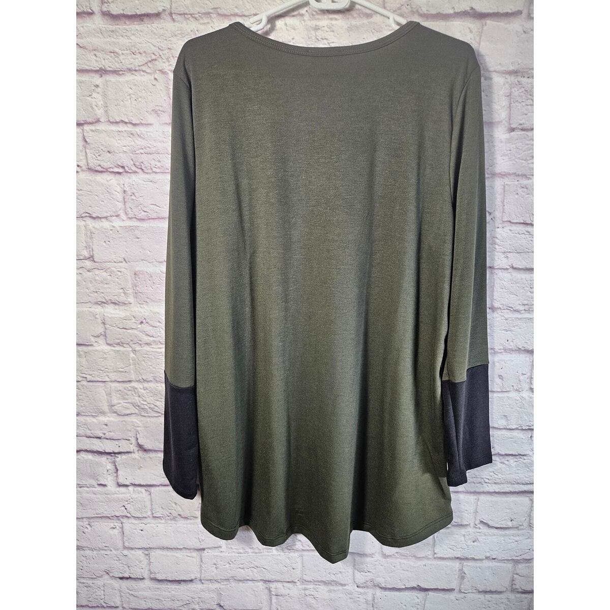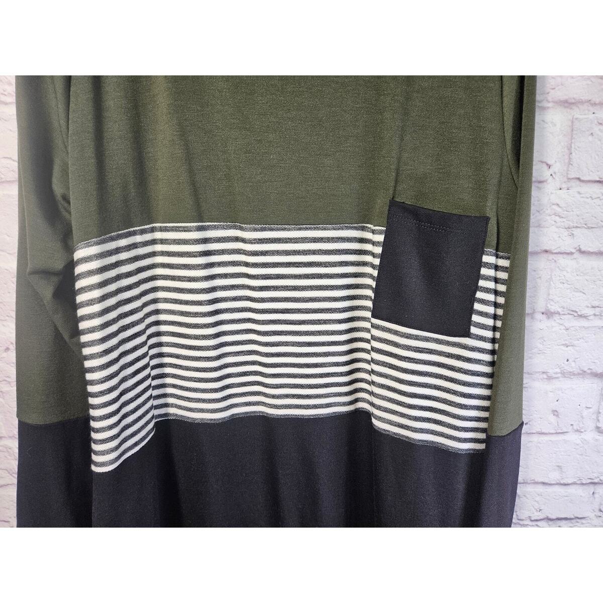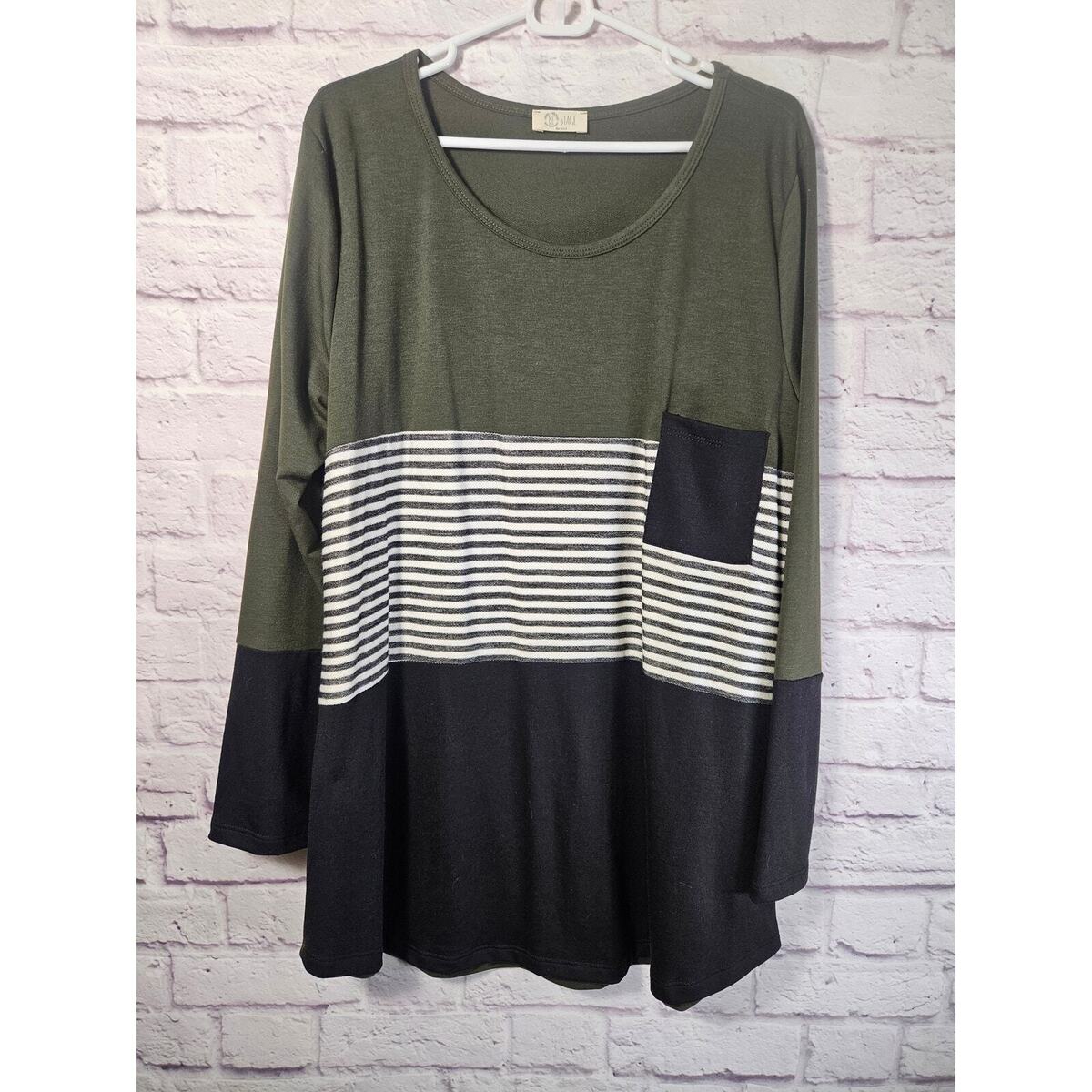 Be Stage Womens Long Sleeve TShirt Green Black White Color Block Stripes 3x USA