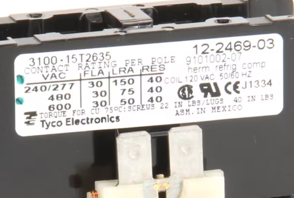 Scotsman 3100-15T2635, 9101002-07, 12-2469-03 Contactor, 120V Coil, Ice Machine