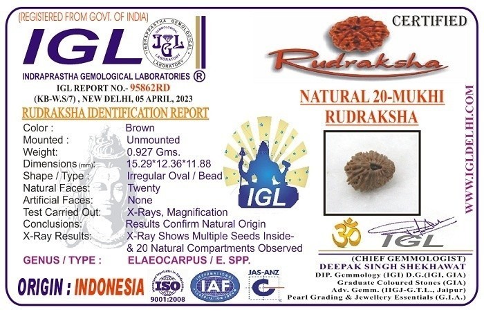 20 Mukhi Rudraksha - Twenty Face Rudraksh - 15.29 mm - IGL Certified