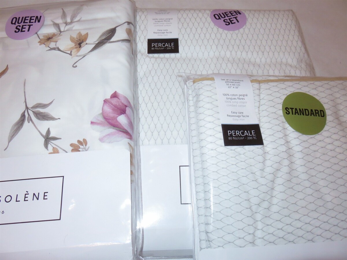 - includes 1 queen flat, 1 queen fitted and 2 standard pillowcases