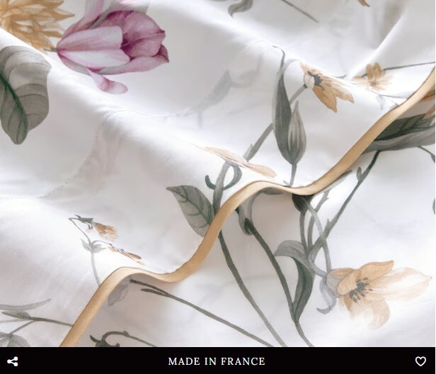 - Perle Lune bedding collection presents a sophisticated design of tulip, nasturtium, dahlia and bindweed flowers coordinated with a modern trellis print