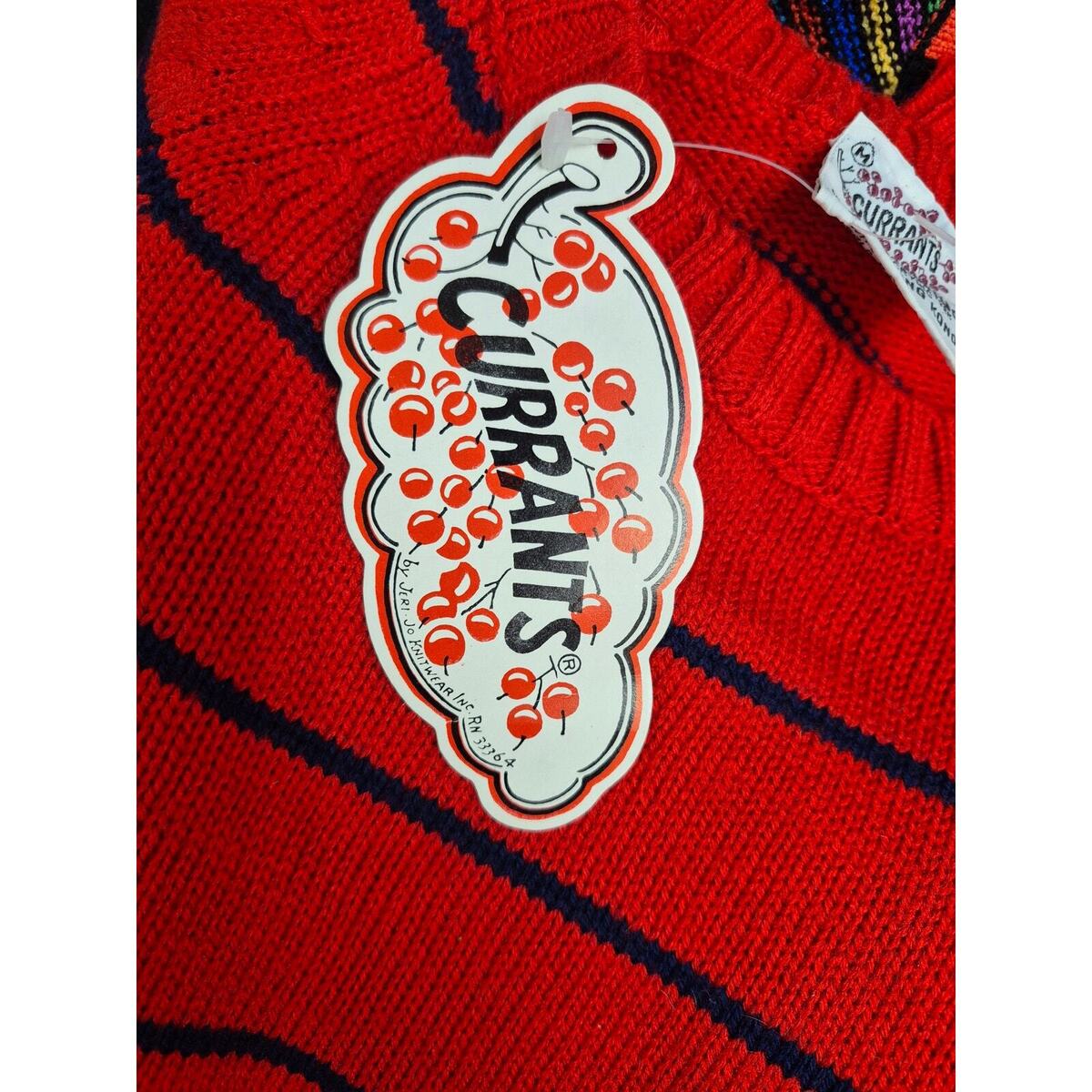 NWT VTG 80s 90s Currants JERi-Jo Red Sweater Blue Stripe Womens Sz. M