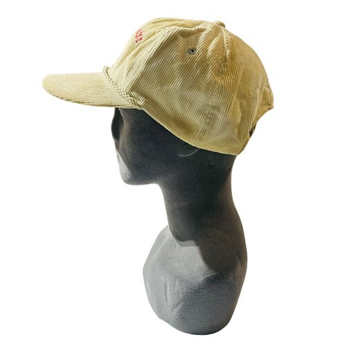 This vintage Columbia Tractor trucker hat is a must-have for any tractor enthusiast or fan of agriculture. The off white/beige corduroy material gives the hat a rustic look, while the braided cord gives a vintage look and the adjustable strap ensures a comfortable fit for all head sizes. The snapback closure adds an extra touch of convenience and style.