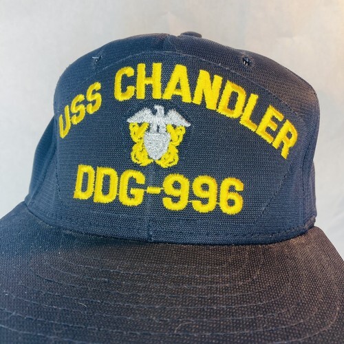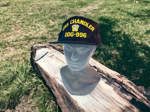 Vtg US Navy USS Chandler DDG-996 Suppo Black Yellow Snapback Hat USA. Very nice clean vintage condition with no signs of wear. See all photos!