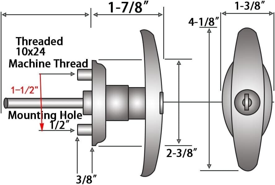 [Package include] : Black T handle 2 keys and 2 screws Mounting: Blind 1-1/2cc with 3/8" Lugs, Tapped 10-24 x 3/8"