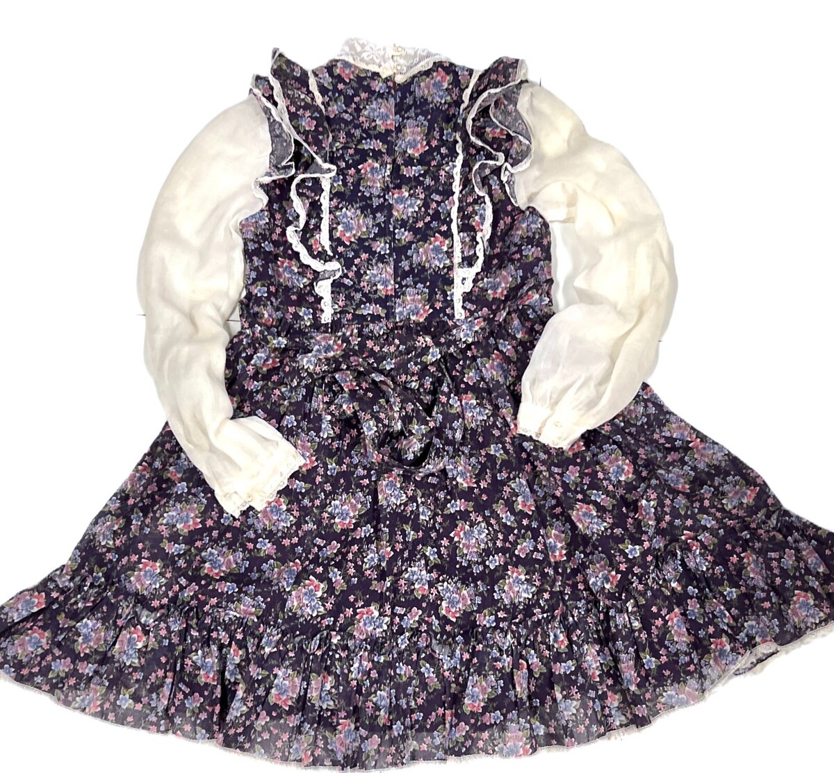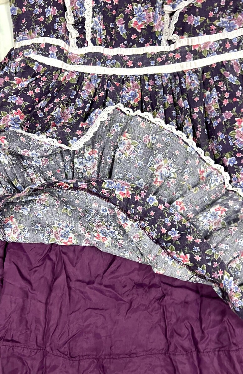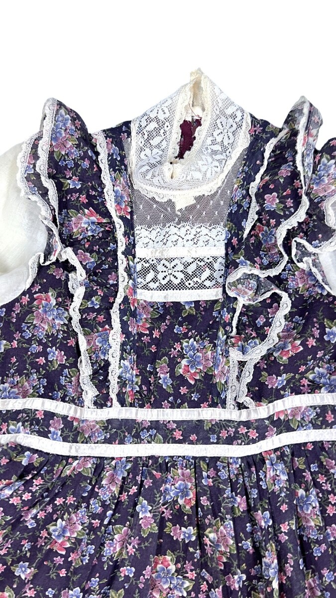 Gunne Sax Jeunes Filles VTG 1970s Girls 10 Dress Purple Floral Lace Cottagecore