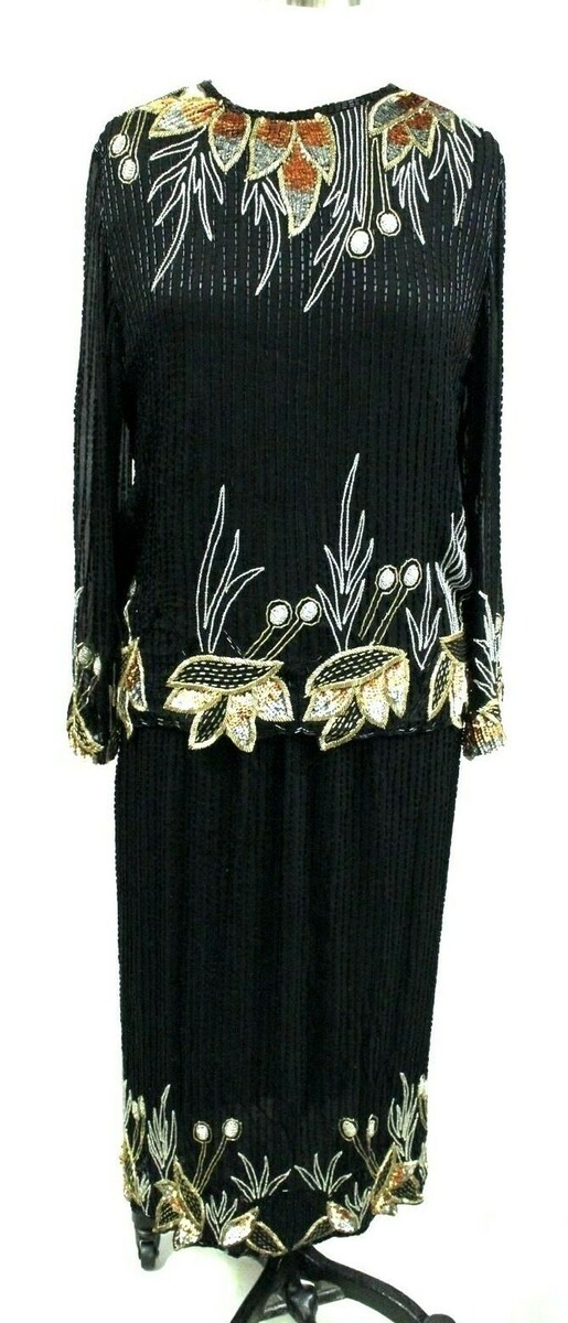 Heavily Beaded VTG 80s 2pc Silk Dress Set and similar items