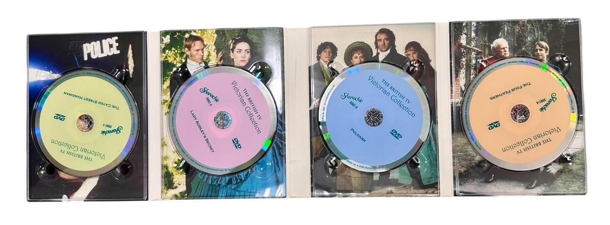 British TV Victorian Collection Four Period Drama Classics DVD Set Cater StreetHangman / Lady Audley's Secret / Poldark / Four Feathers Previously owned but the discs are in very good condition Comes as shown