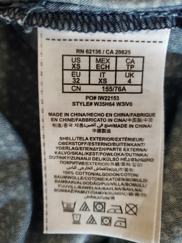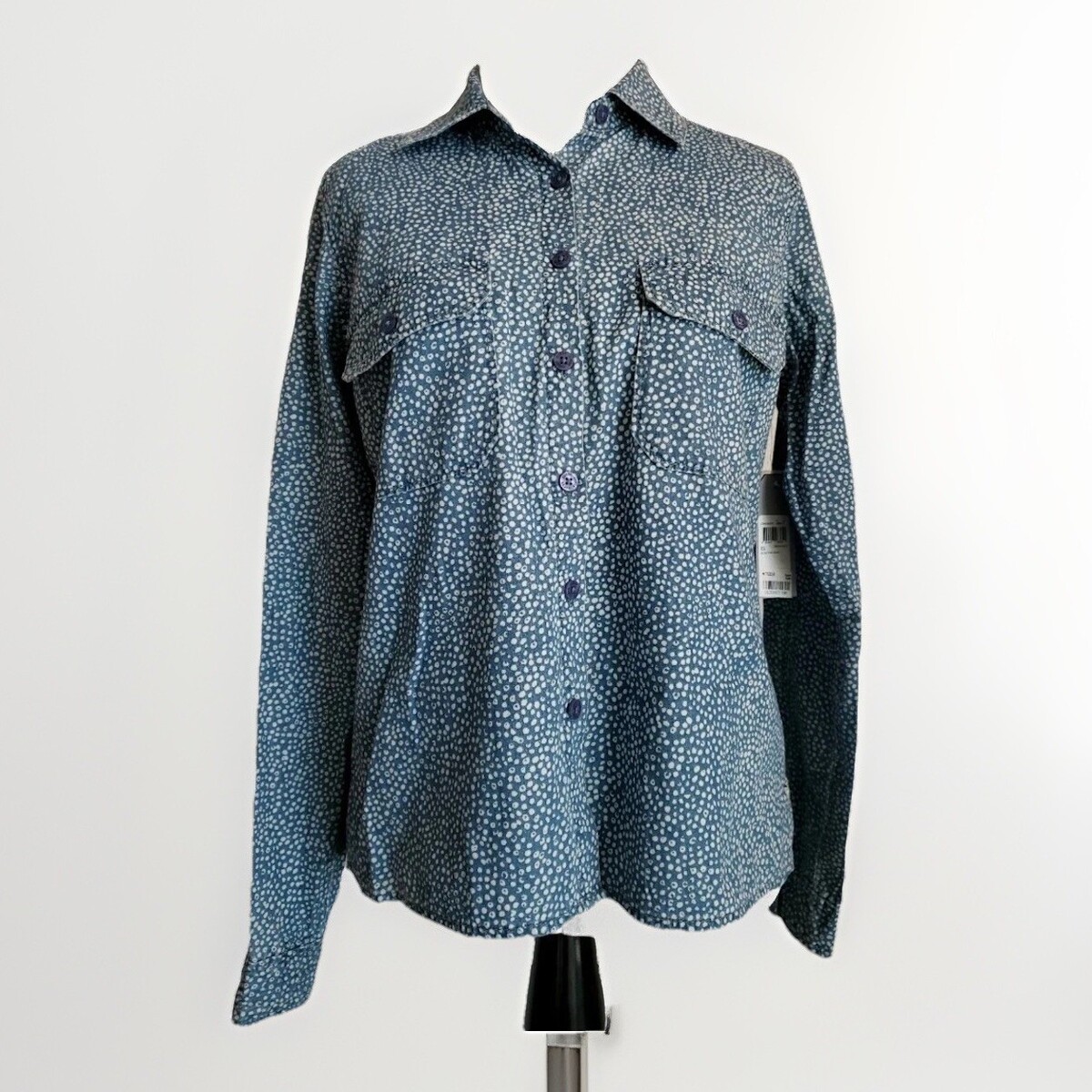 Guess Polka Dot Shirt 100% Cotton Womens XS Blue 1981 Denim Top Chambray Long
