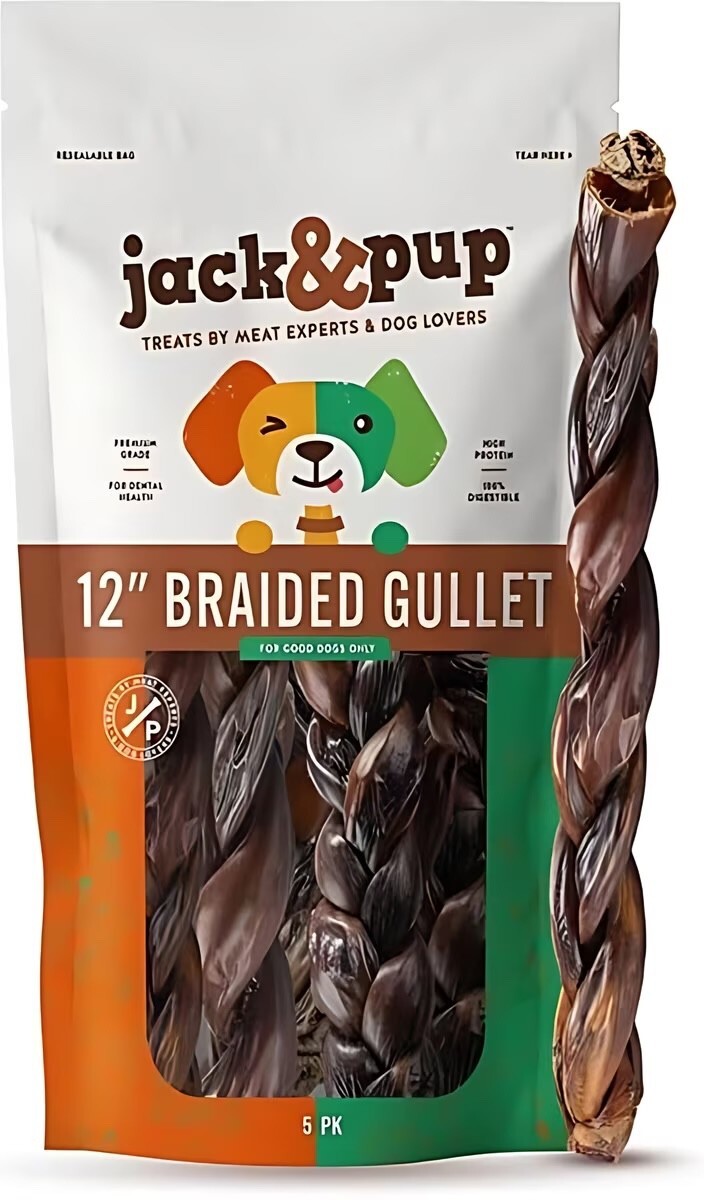 JACK & PUP 12" BRAIDED GULLET PREMIUM DOG TREATS 5 COUNT BRAND NEW