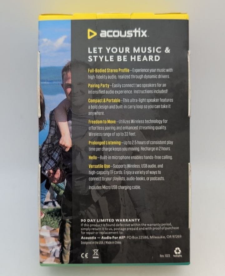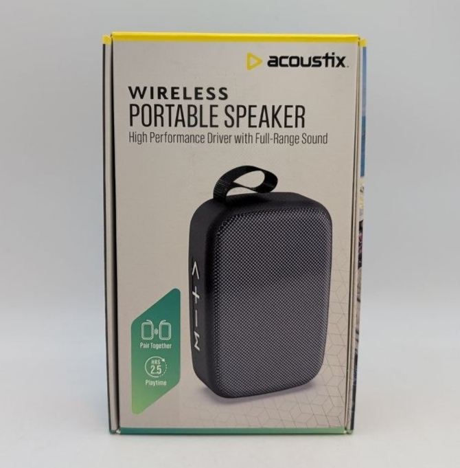Item includes: Please note: This item includes 1x Acoustix Portable Bluetooth Speaker, 1x USB Cable Only ? As Pictured. No other accessories are included.
