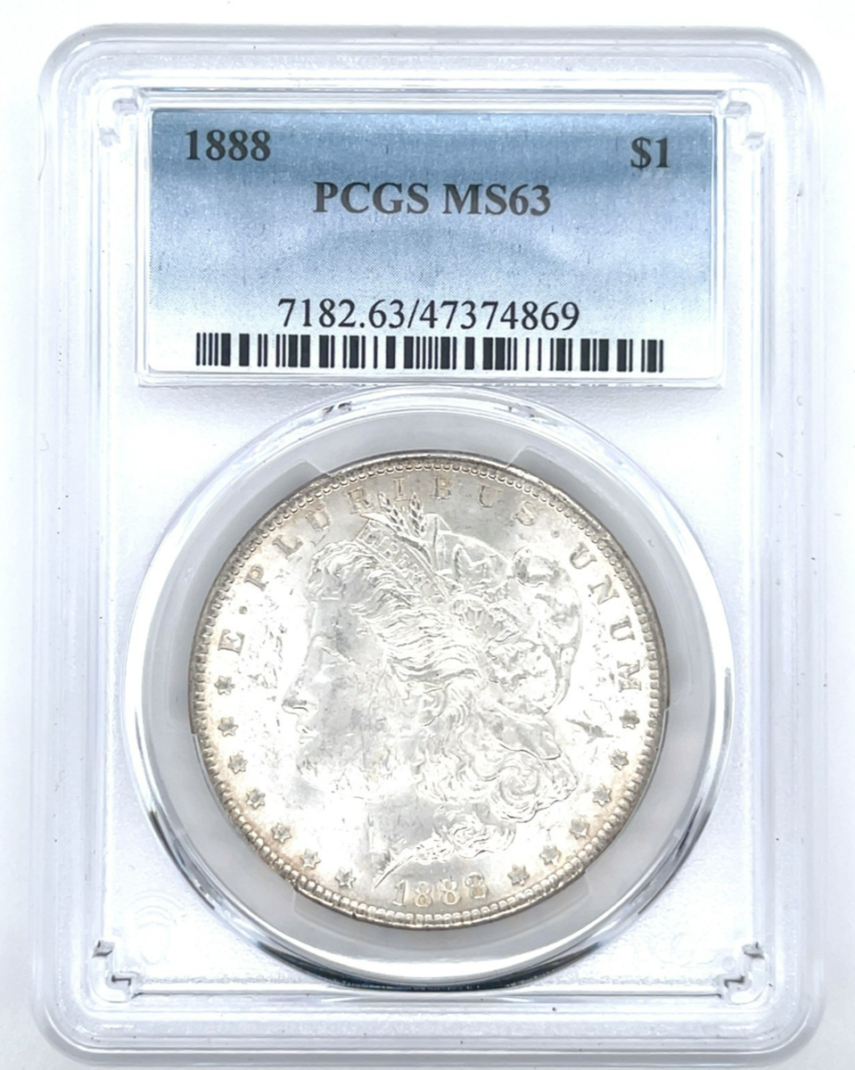 1888 $1 United States Morgan Silver Dollar PCGS MS63 90% Silver