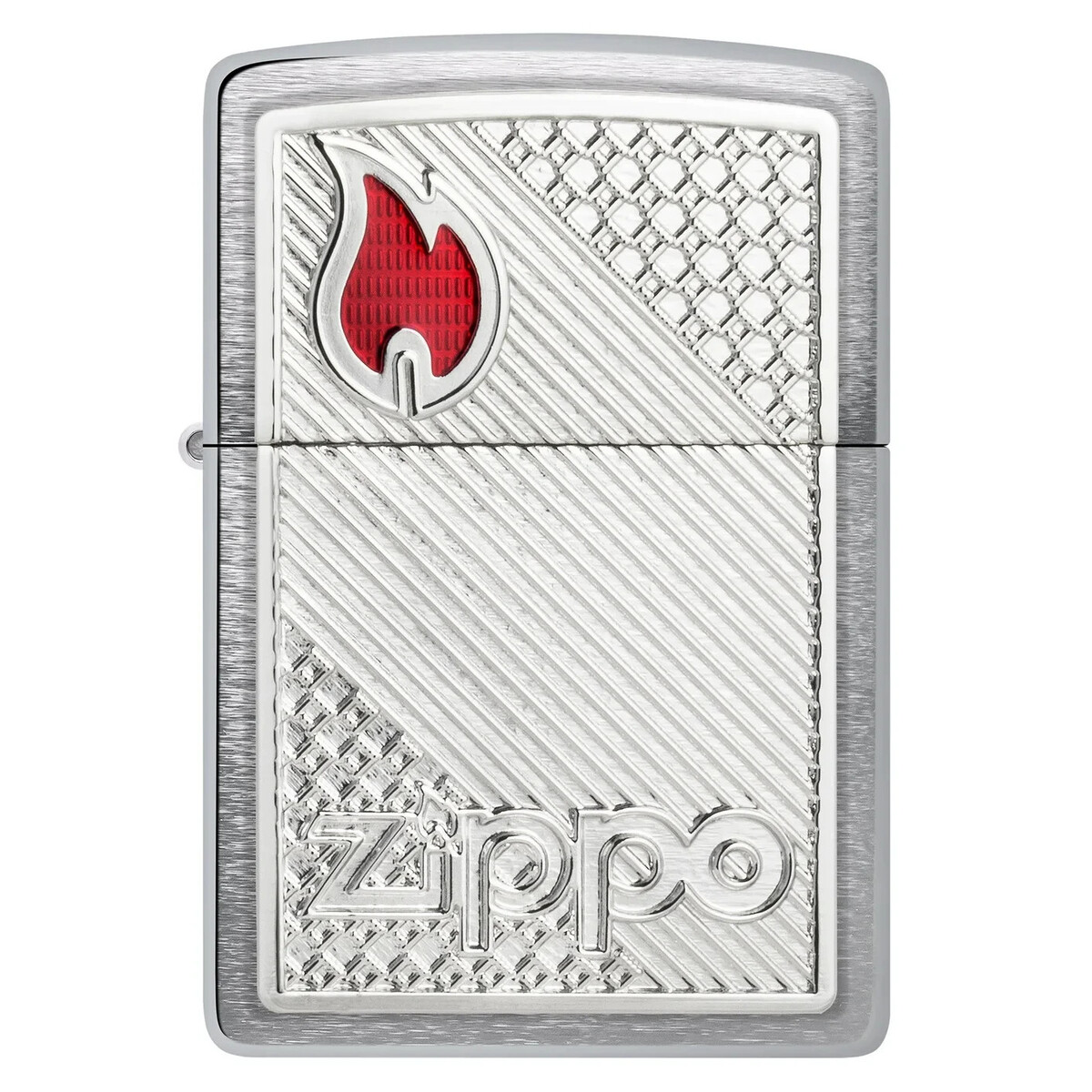 Zippo Lighter - Tiles Emblem w/Logo Brushed Chrome - 48126