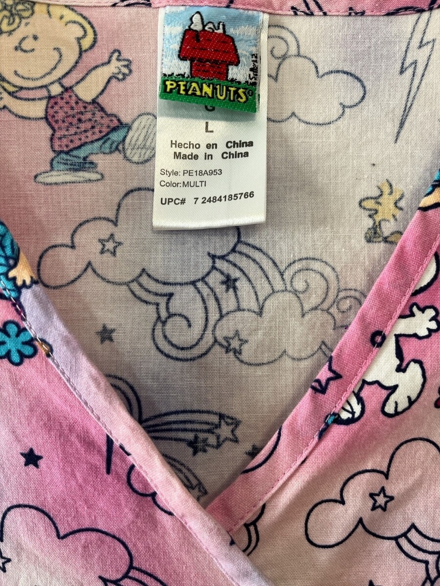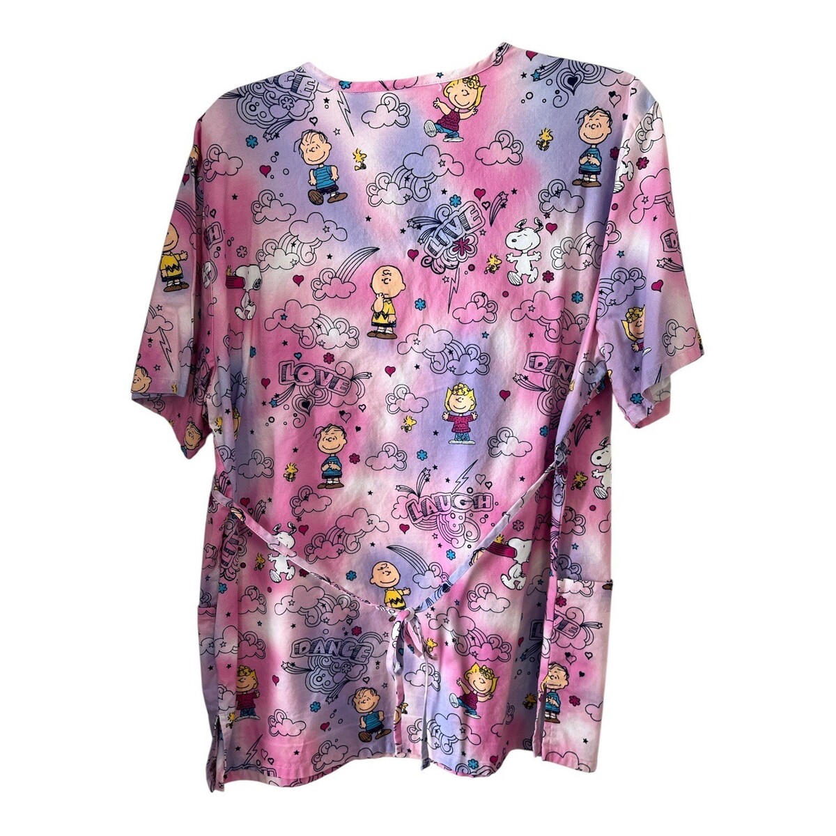 Peanuts Scrub Top Pink Tie Dye Snoopy Charlie Brown Women?s L