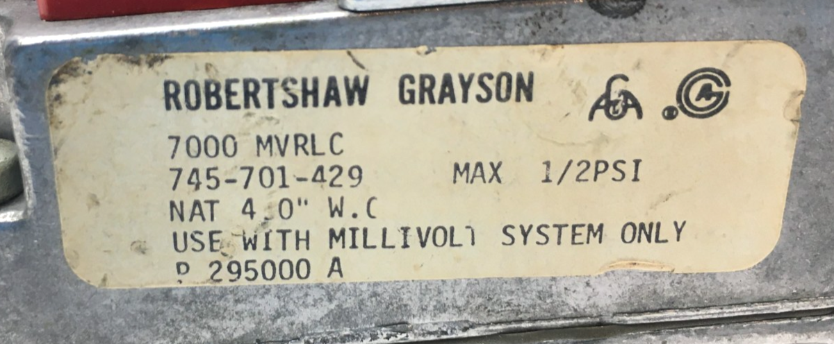 This is Robertshaw 7000MVRLC Gas Valve 745-701-429 in and out 1/2'', bench tested and it's
