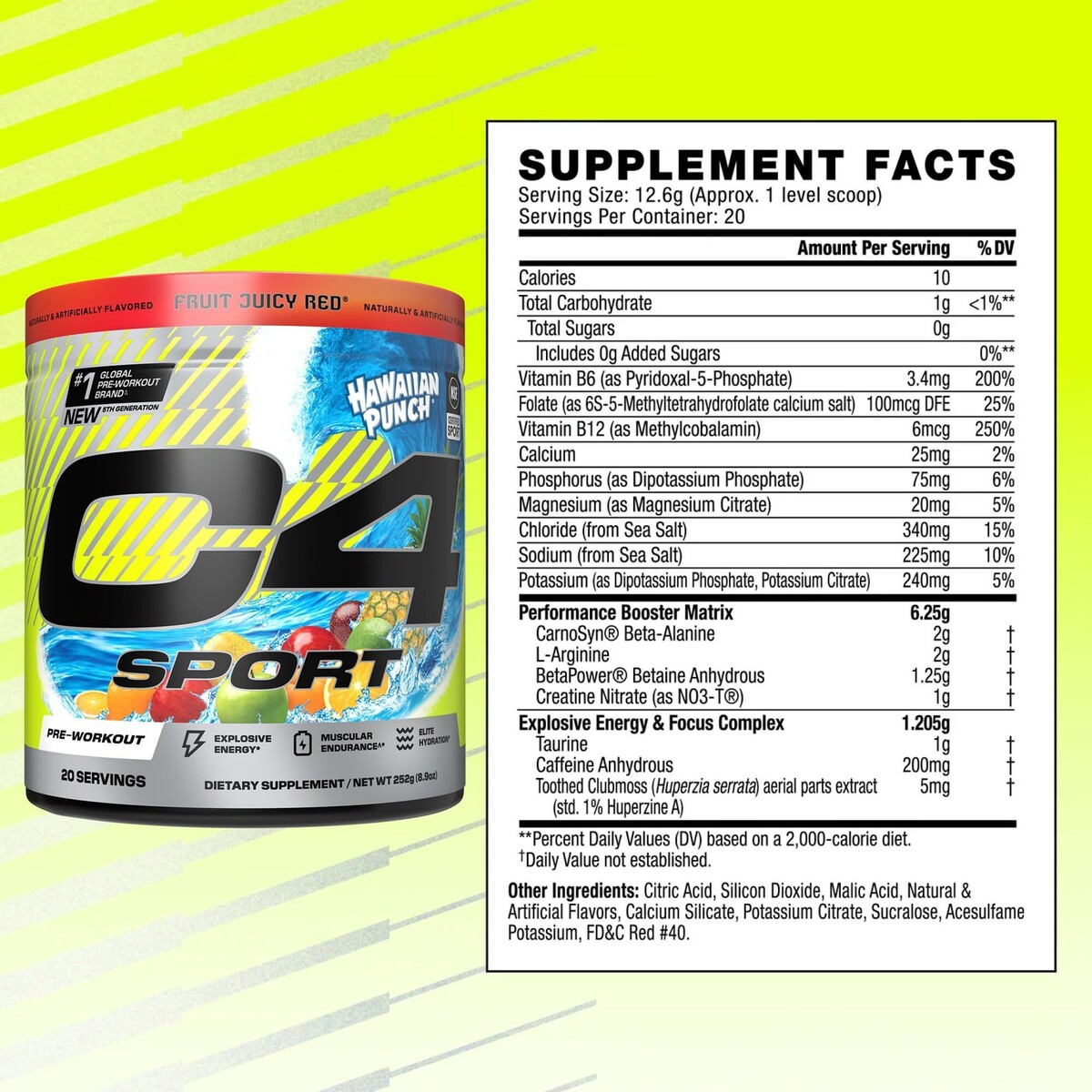 4/27 Cellucor C4 Sport Pre Workout Powder Hydration Hawaiian Punch, 20 Servings