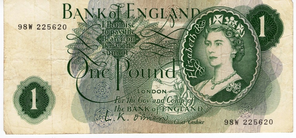 BANK OF ENGLAND ONE POUND NOTE. Chief Cashier O'Brian FREE SHIPPING