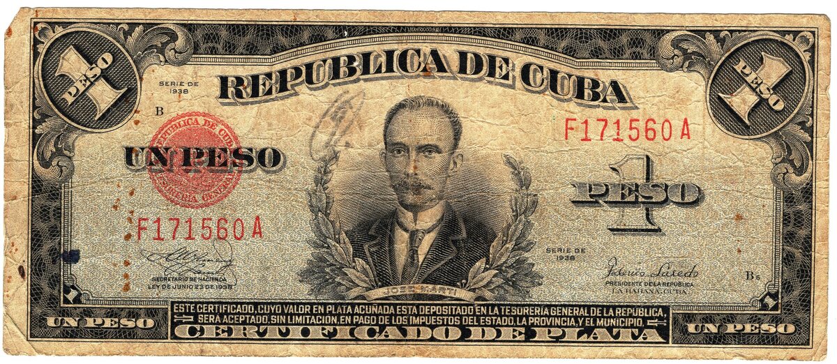 RARE United States Cuba 1938 Certificado Plata (Silver Certificate) 1 Peso Bankn