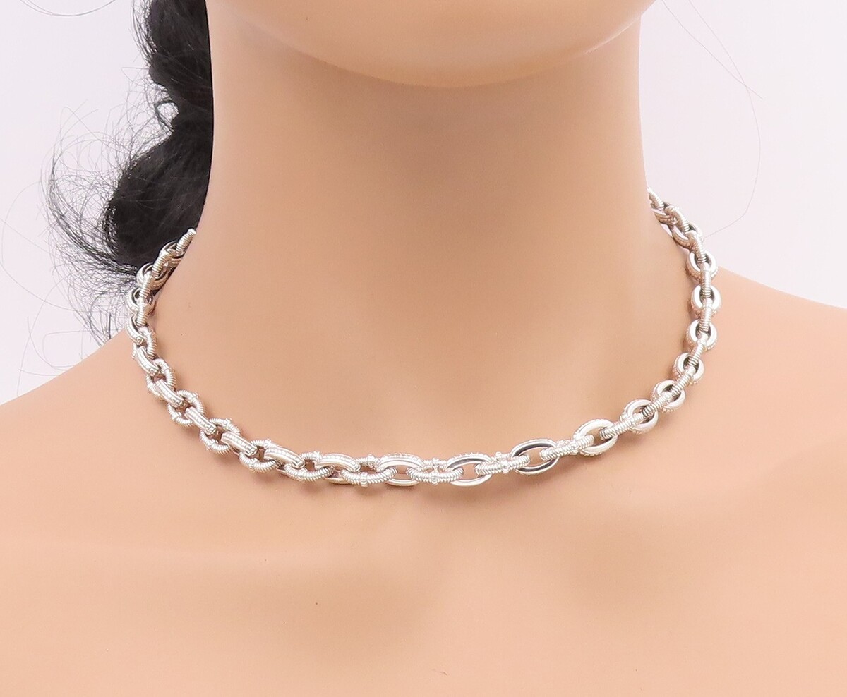 18k Gold & 925 Sterling Silver Vintage Necklace JUDITH RIPKA CZ Chain NE4852