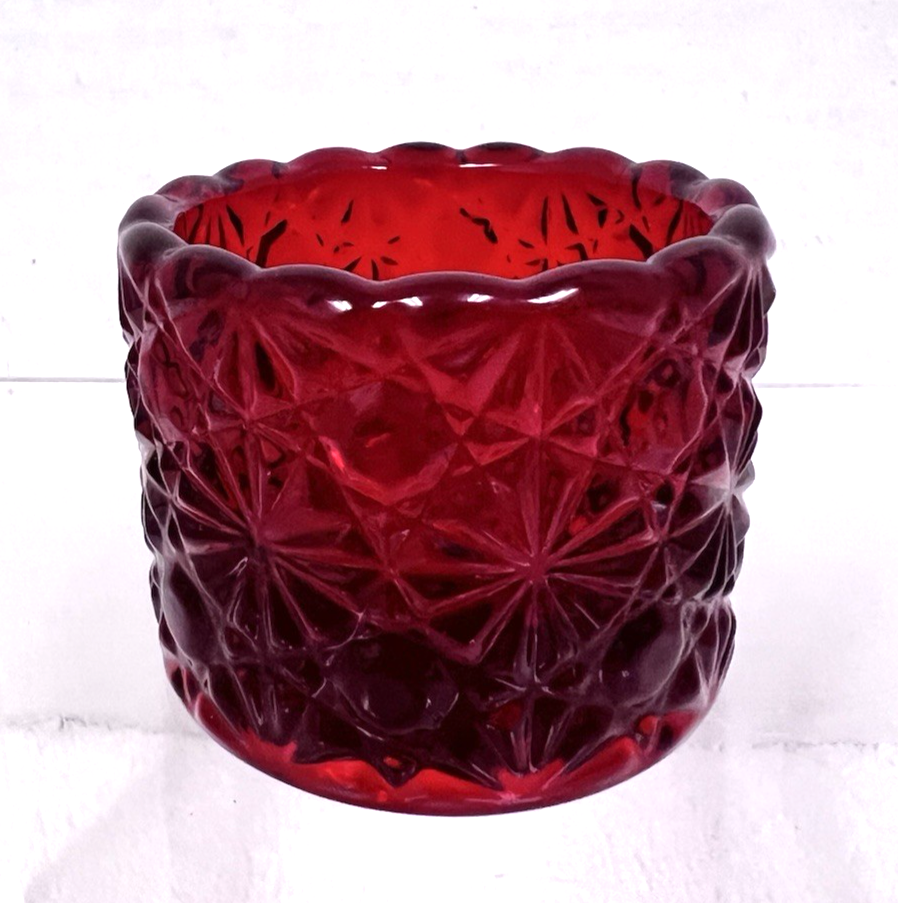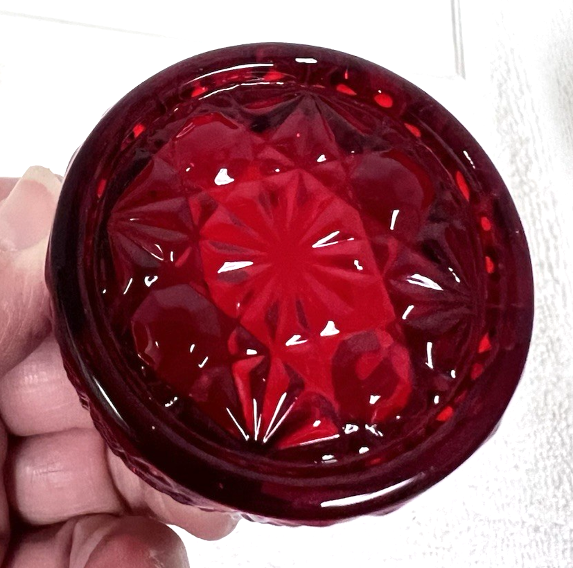Vintage Daisy Button Pattern Ruby Red Glass Open Salt Dip Cellar 1 3/4" Tall