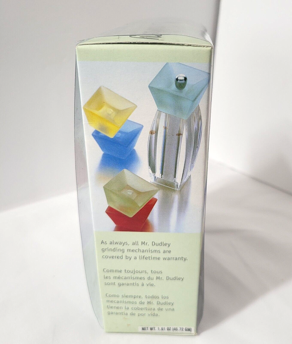 Mr. Dudley NEW Clear Acrylic SALT MILL + 5 Color Tops Red Green Yellow Blue Aqua