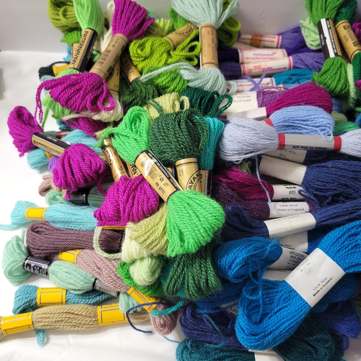 Lot 200 Wool Crewel Embroidery Yarn Mixed Brands: Paternayan Persian, Appleton++
