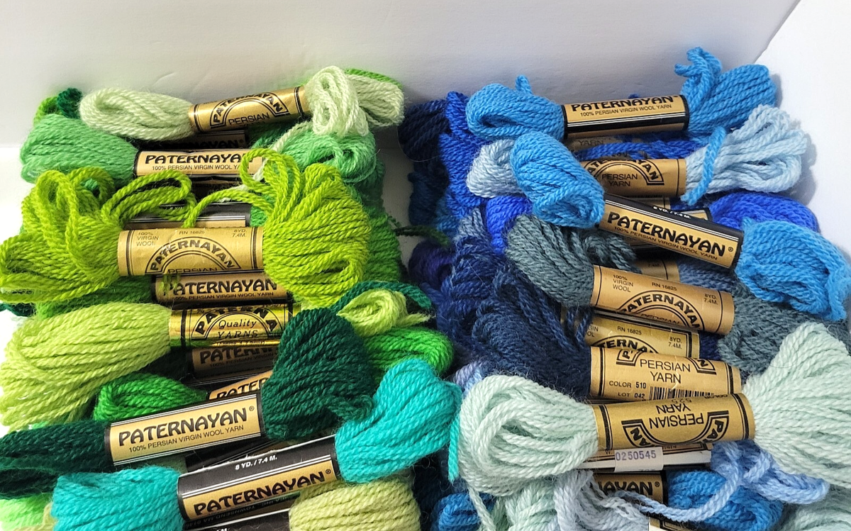 Number of skeins: Paternayan Persian (65), Appleton England (28), Spinnerin Persianna (19), DMC (99)