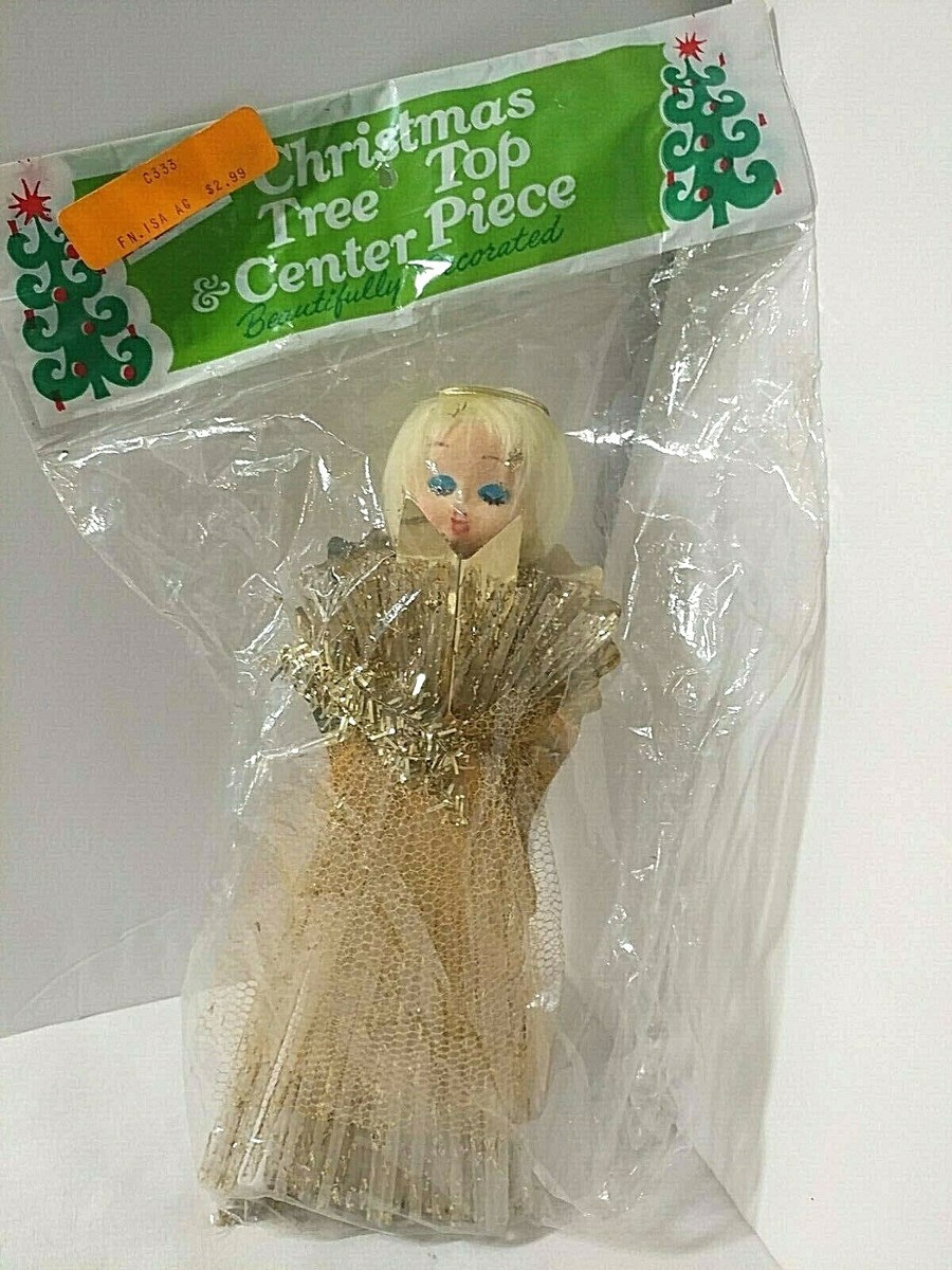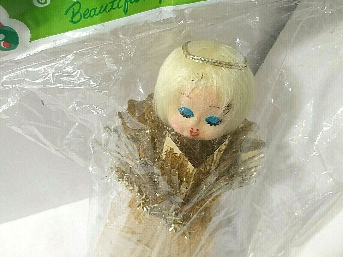 Tree Topper Angel 10" Vtg Plastic Straws RARE Gold Decoration Sealed Orig Pack