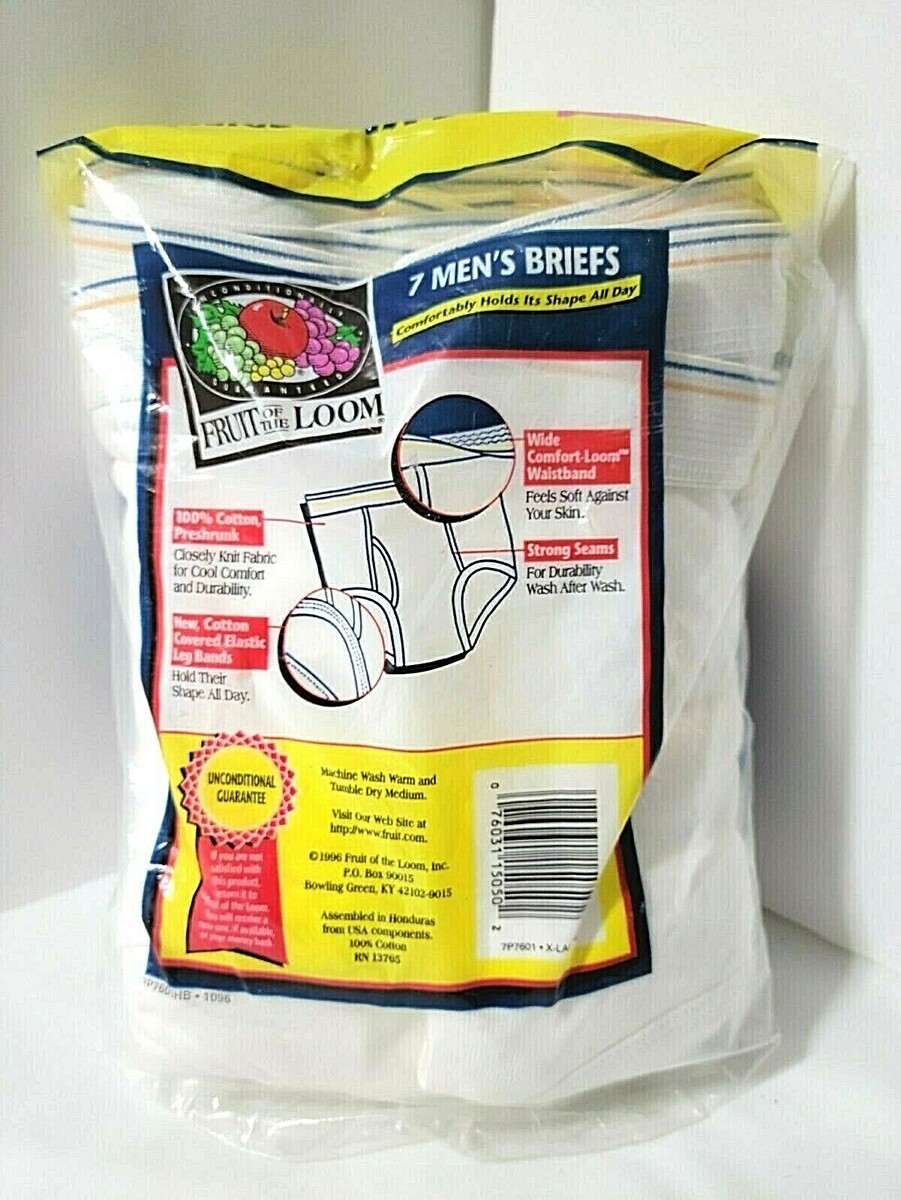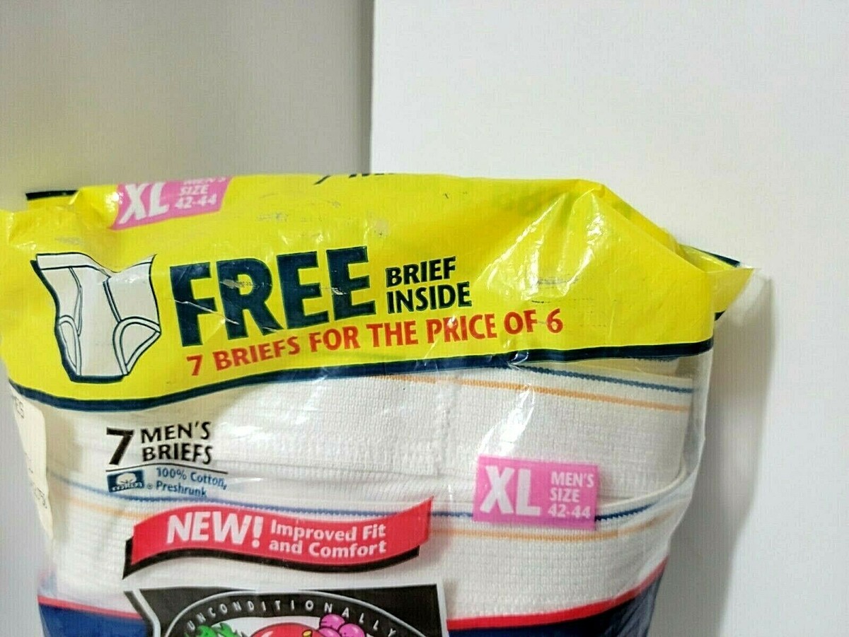 Vtg 90s NEW 7 Pr Sz XL 42 - 44 FTL Fruit of the Loom Mens Briefs Underwear White
