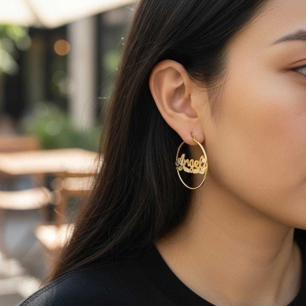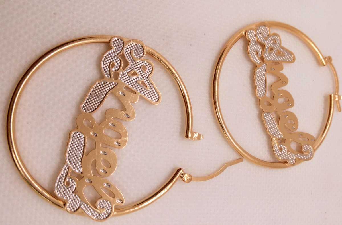14K Gold Filled Anti Tarnish 3mm Thick "Angel"Name Earring 4cm Diameter
