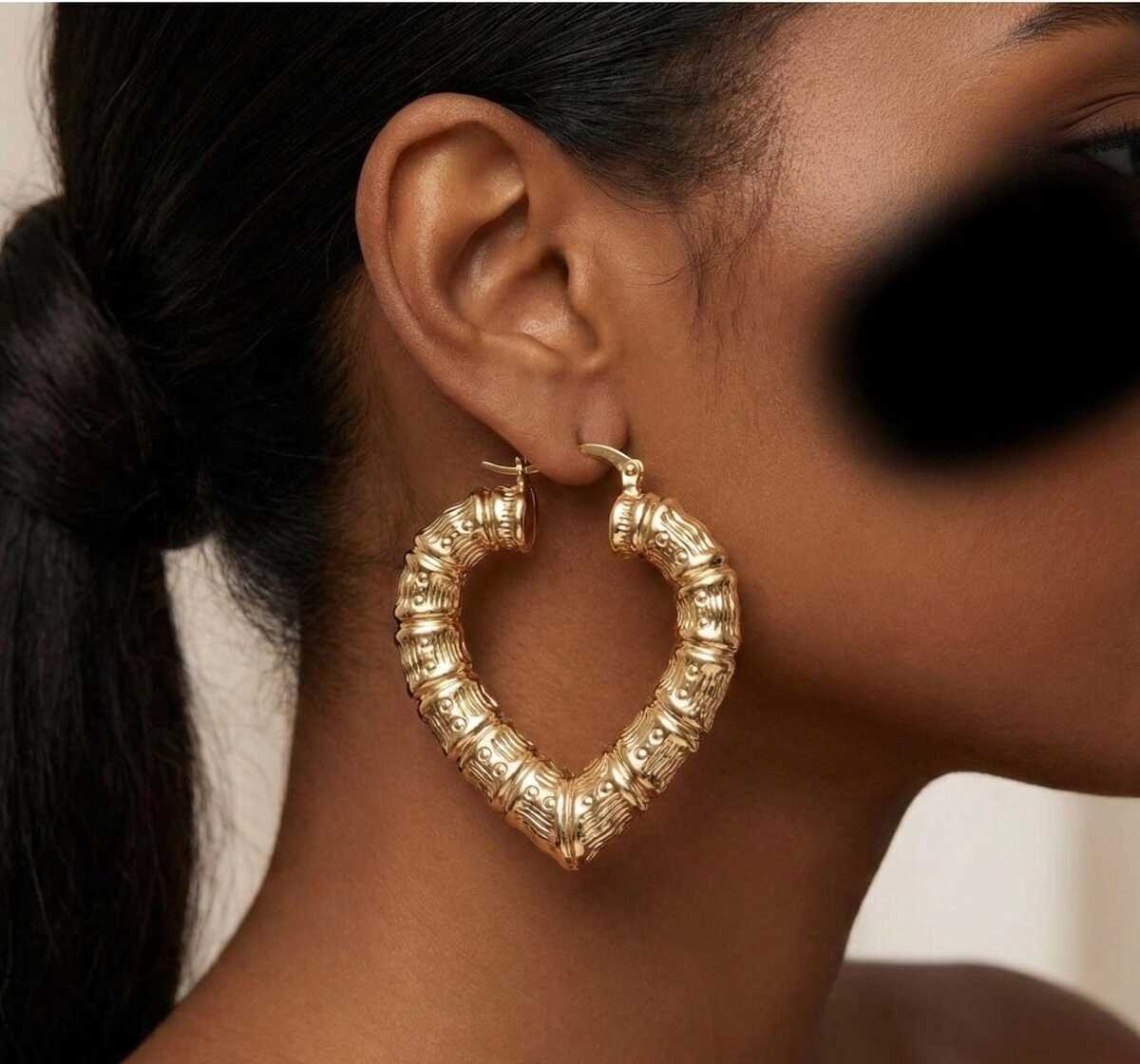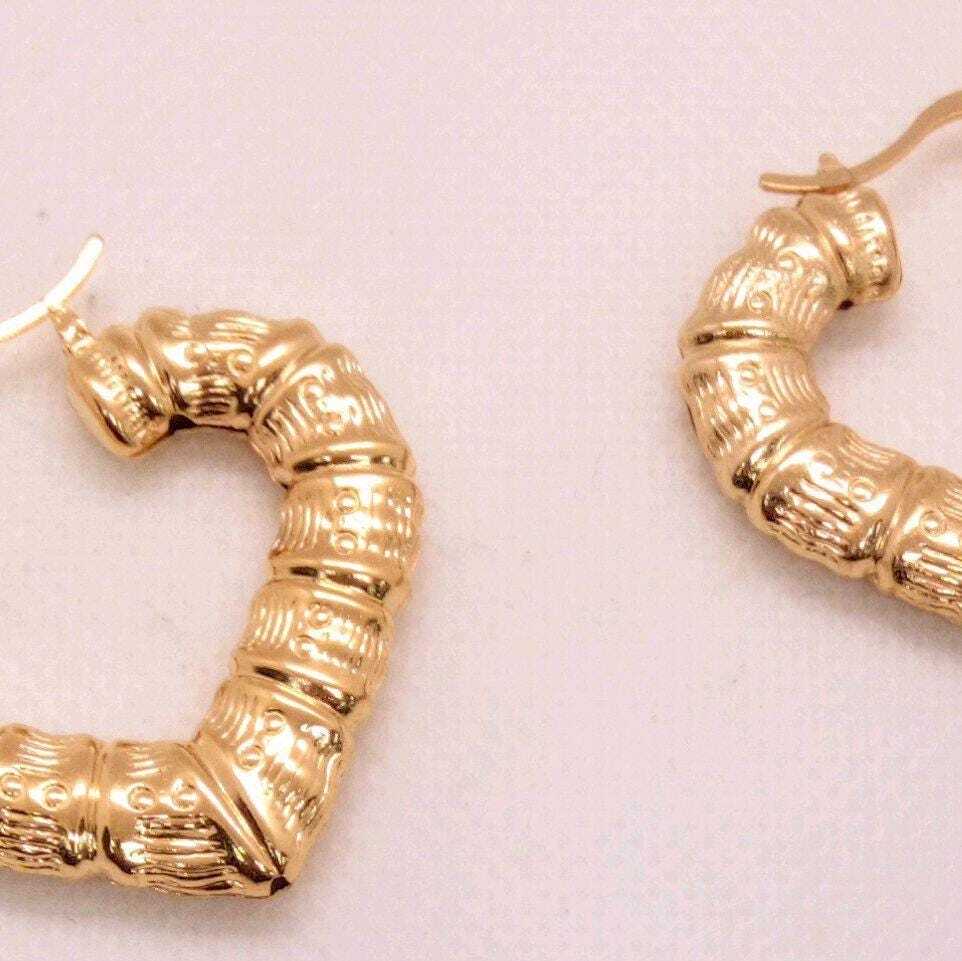 14k Gold-Filled Bamboo Heart Earrings - Elegant Design with 1.25 Inch Size for E