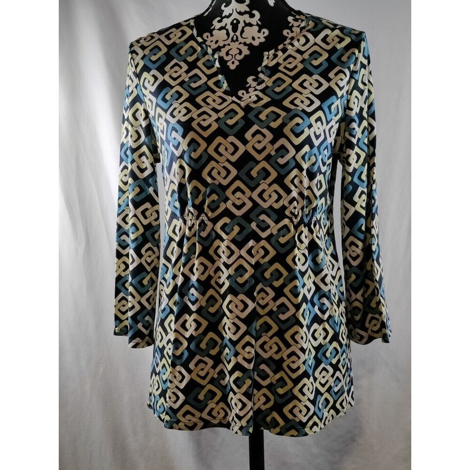 Ann Taylor Womens V-Neck Long Sleeve Top Blouse Geometric Print Size Medium