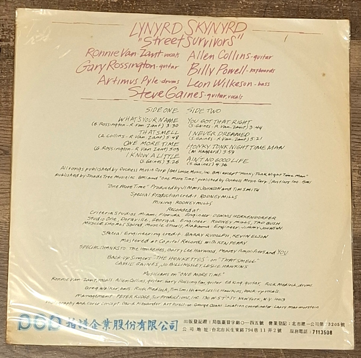 Lynyrd Skynyrd Street Survivors Taiwan POP LP MH-7233 MCA-1366 Matrix VG+ Vinyl
