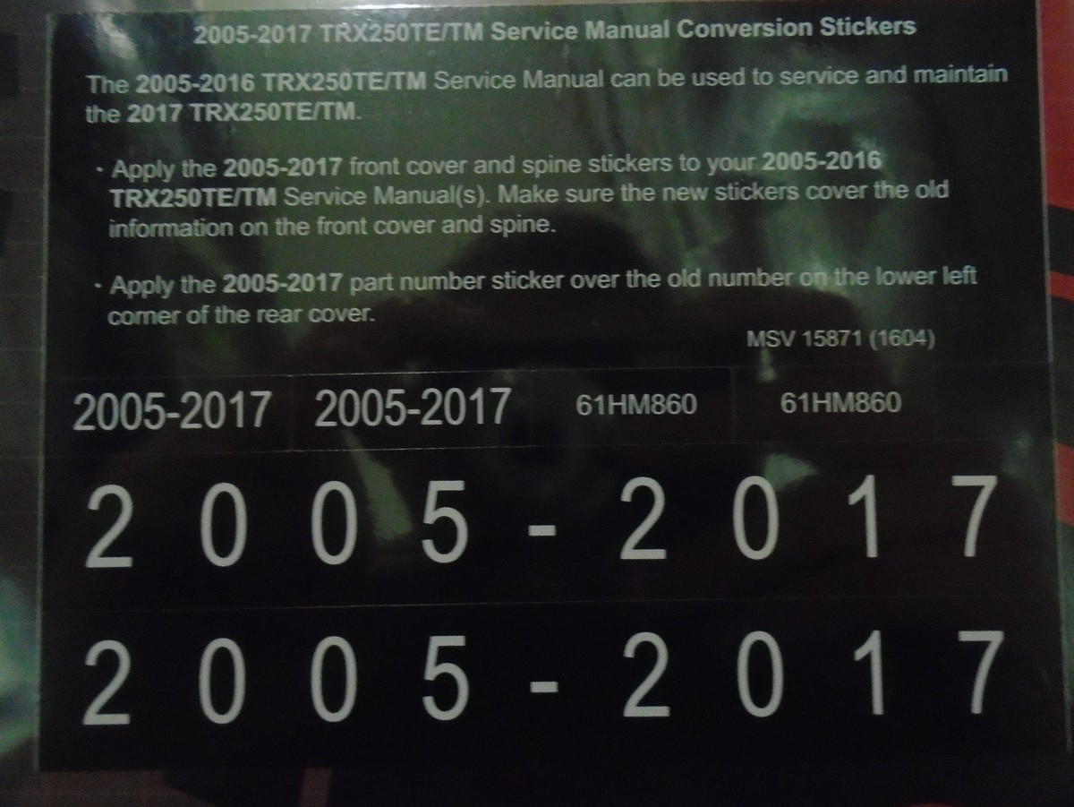 2011 2012 2013 2016 2017 2018 Honda TRX250TE/TM Recon Service Shop Repair Manual