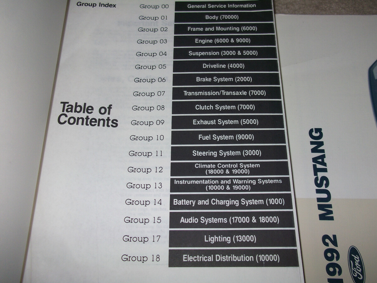 1992 Ford MUSTANG Service Manual, Specifications Manual, Pre-Delivery Maintenance and Lubrication Manual and the Electrical and Vacuum Troubleshooting Manual