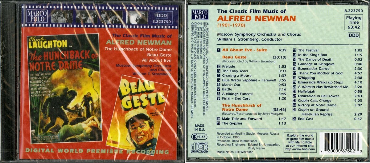 This is a new factory sealed CD of HUNCHBACK OF NOTRE DAME 1939 BEAU GESTE 1939 ALL ABOUT EVE 1950 BY ALFRED NEWMAN. It was made in the European Union EU and is Out Of Print