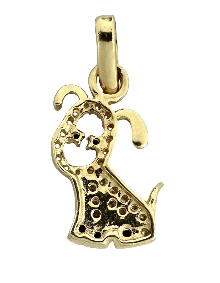 Type: CharmWeight: 1.0Karat: 14ktMetal: Yellow GoldGender: UnisexStyle: AnimalSize / Length: 1/2"Owner applied: noneStone 1 quantity: 23Stone 1 shape: RoundStone 1 color: ClearStone 1 weight (total): .23Stone 2 Quantity: 5Stone 2 Shape: RoundStone 2 Color: BlackStone 2 Weight (Total): .05Condition:Used