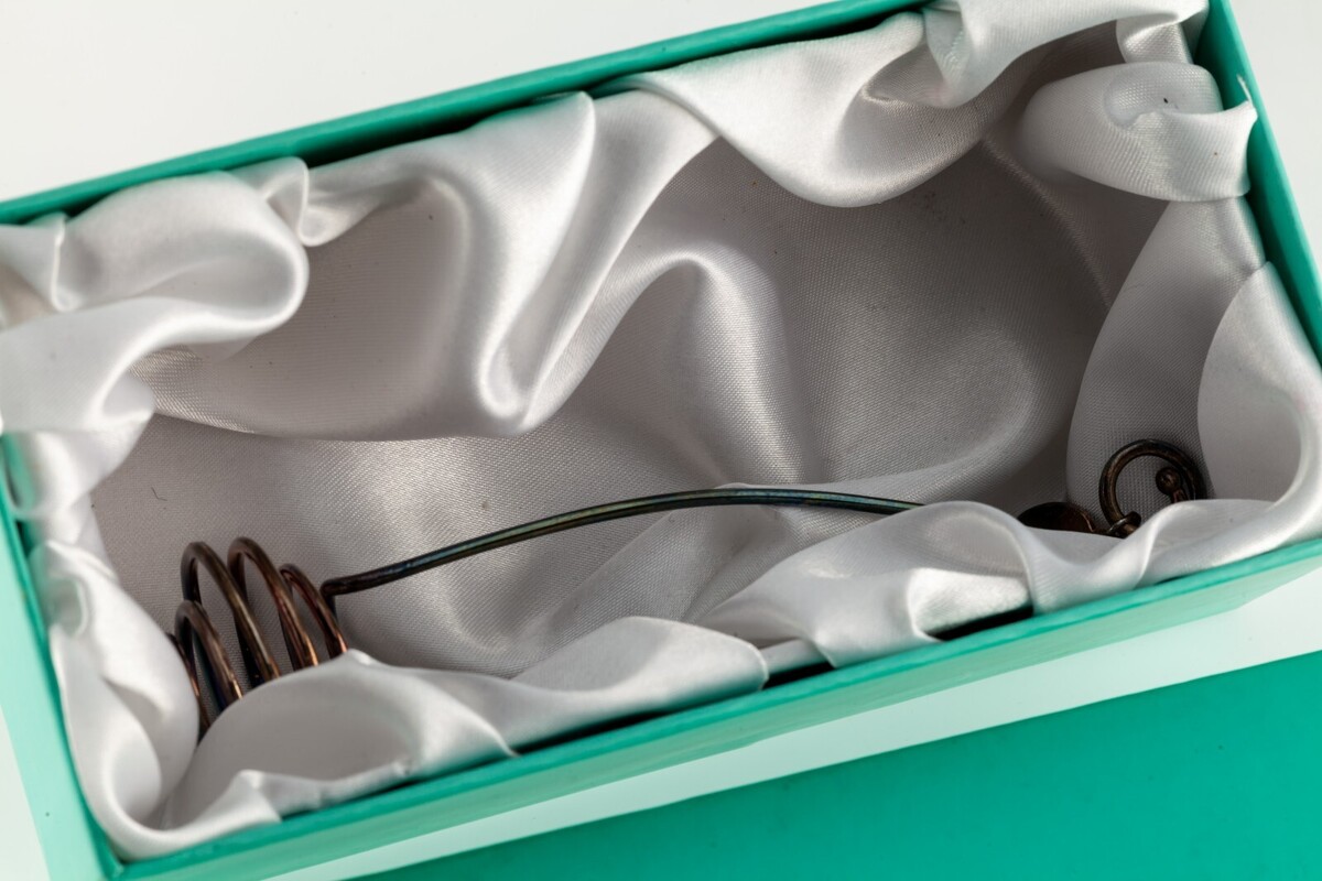 Piece appears unused. Nice Rainbowish Toning to Silverplate. Includes Original Box. See photos for details.