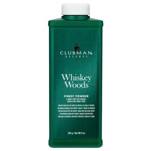 Clubman Pinaud Reserve Finest Powder in Whiskey Woods is a premium men?s grooming powder designed to keep skin dry, comfortable, and lightly fragranced. Infused with a warm, masculine scent featuring tobacco leaf, bergamot, whiskey, and woody notes, it delivers a refined barbershop-inspired finish.