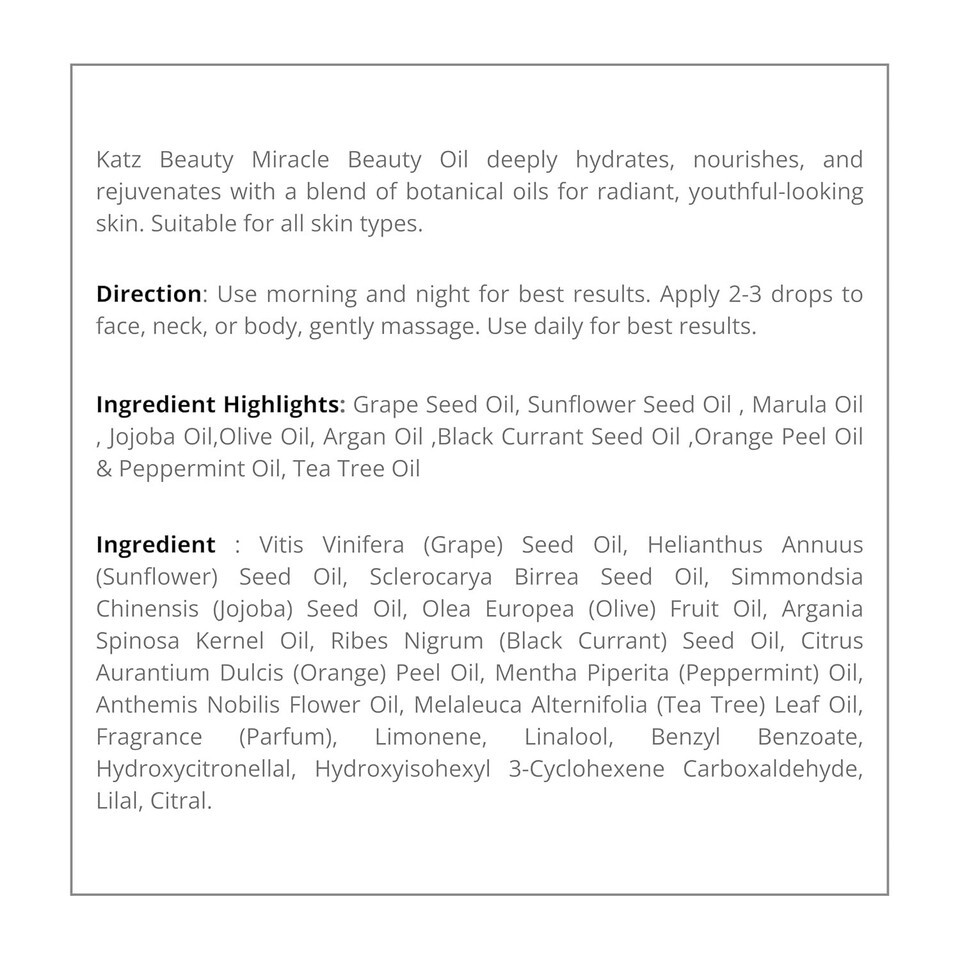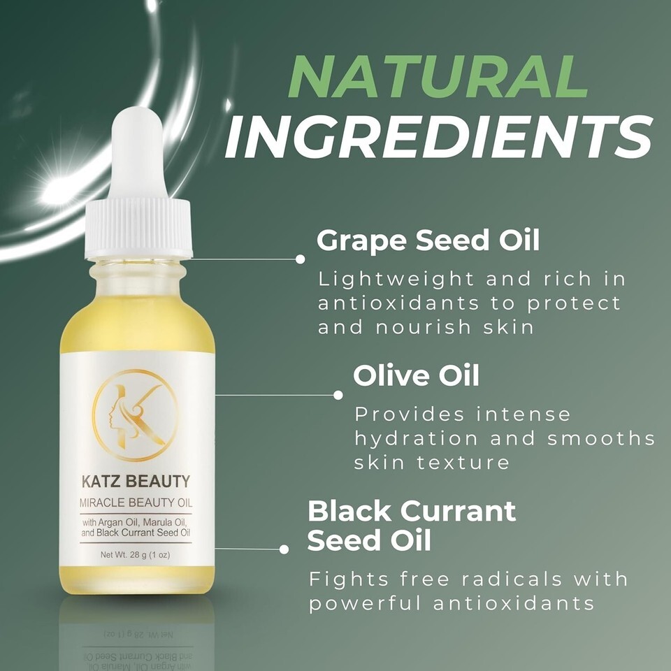 Katz Beauty Miracle Beauty Oil - Hydrating Face Oil with Jojoba, Argan Marula Oil for Anti-Aging Glow, Non-Comedogenic