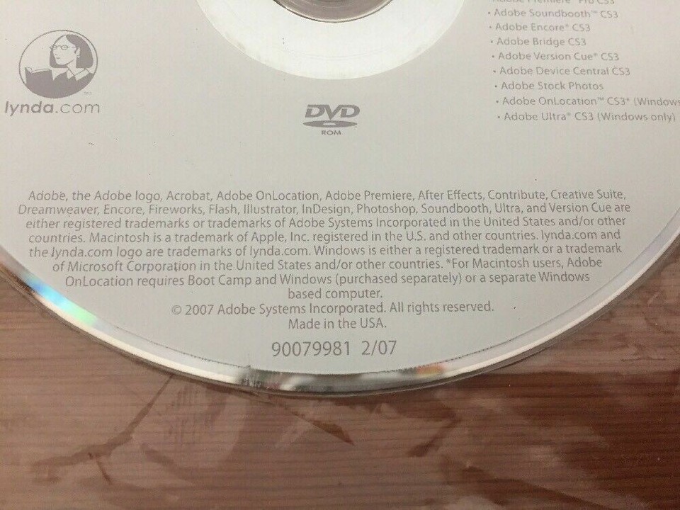 2007 Creative Suite CS 3 Video Workshop Tutorials Lynda.com Disc DVD