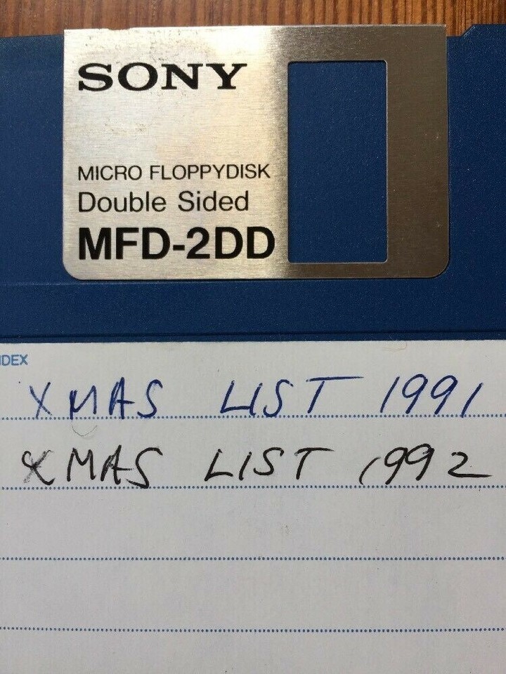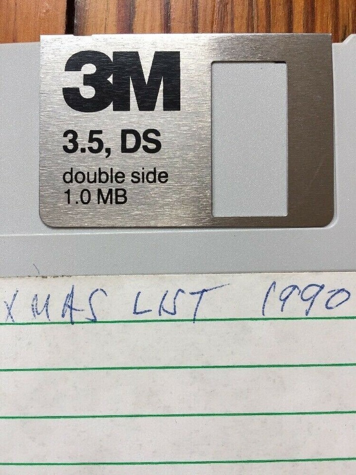 Vintage 1990s Macintosh Mac Formatted MFD-2DD Floppy Disk W/ Christmas Lists