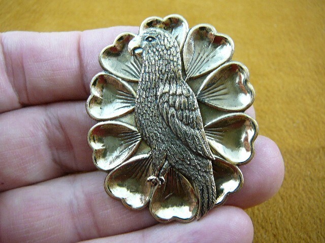 (Internal #B-BIRD-551) This is a brass - - stamped parrot, on a second piece of brass with heart trimmed design, made into a pin/pendant (backing glued on the back). This gorgeous - - stamped brass is antiqued, then buffed to create some shine. ?BRASS IS A GOLD COLOR?.