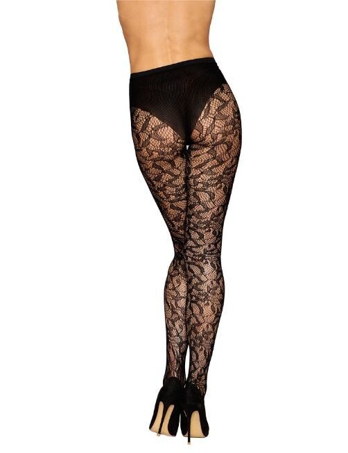 Seamless knitted lace pantyhose with knitted-in solid panty and soft elastic waistband