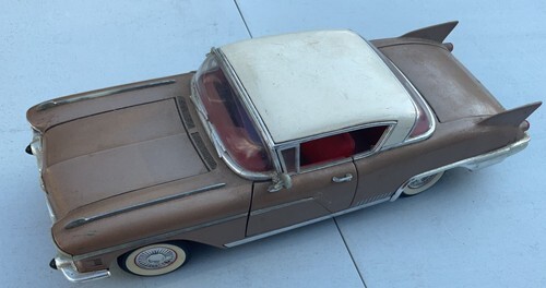 Keywords: vintage toy car, Cadillac collectible, 1960s toy, radio toy, diecast model, classic car replica, nostalgic toy, display piece, automotive memorabilia, mid-century modern, Hong Kong toy, Easter basket stuffer, birthday gift, desk accessory
