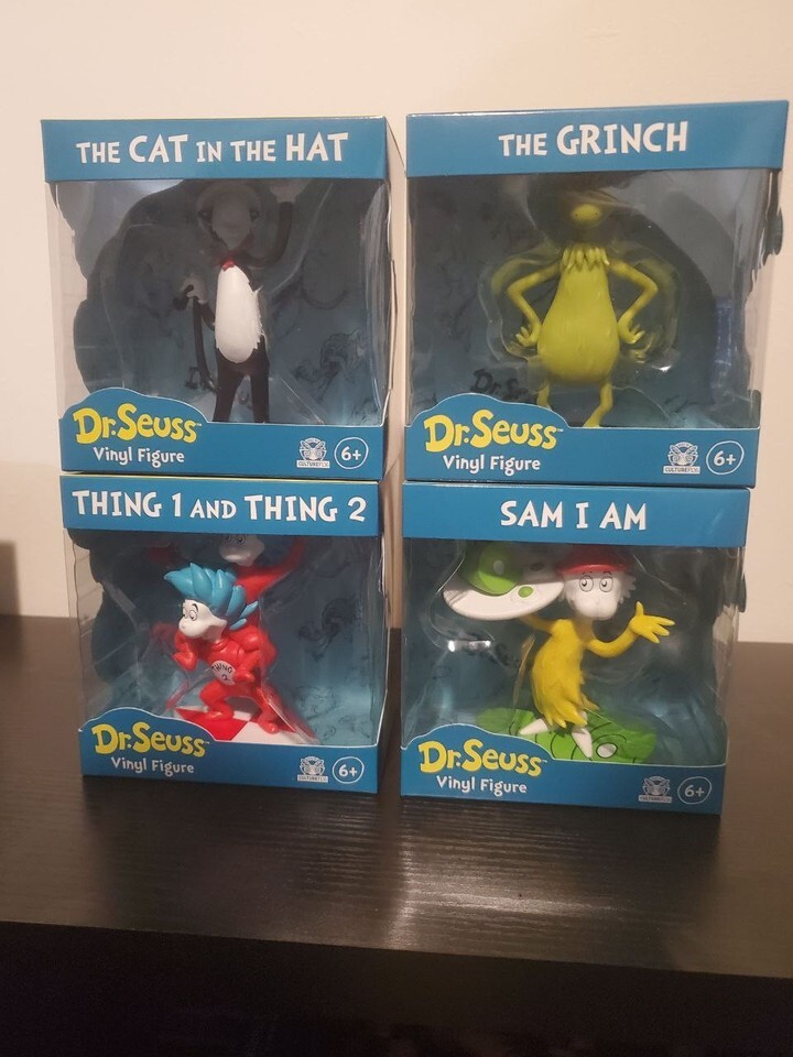 Dr. Seuss The Grinch, Sam I Am, Thing 1 & 2 Cat In Hat 4” Vinyl Figures Set Of 4